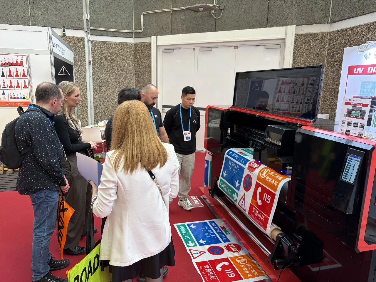 双展并行,中外同辉,力美以品质惊艳全场。本次同期参展的两大展会,覆盖亚洲广告标识与欧洲交通领域两大核心赛道,既是力美深耕喷印墨水领域的实力彰显,也是品牌走向国际、链接全球市场的重要一步,两场展会均以道路交通标识UV墨水为核心展示产品,同步搭配现场打印演示,让每一位观众直观感受产品实力。