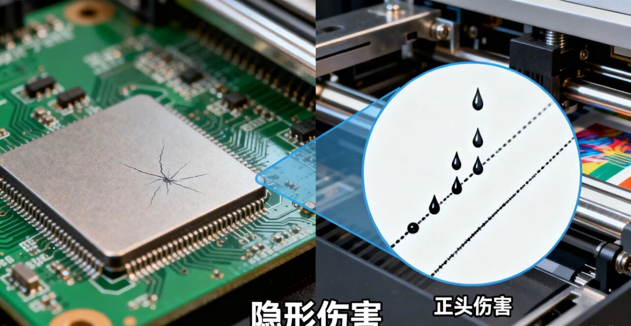 数码直喷印花机的核心是各类主板,内部电路间距短、面积小,敏感度电压仅0-200V——这意味着哪怕是轻微静电,都可能击穿电路、导致部件失效,进而引发喷头墨滴偏移、打印精度下降等问题,严重时还会直接停机。